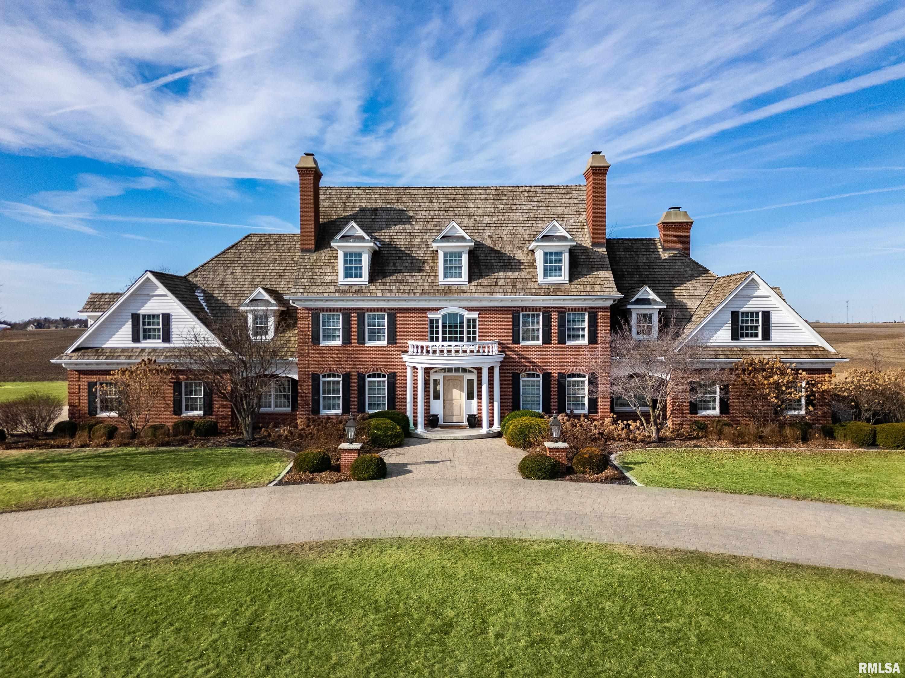 Coming Soon! A rare opportunity to own this one owner custom built Georgian Colonial Estate offering refined craftsmanship, architecture, design & exceptional scale on 5.2 private acres! Meticulously maintained all brick residence w/cedar accents features 4 full masonry fireplace & chimney systems, over 10,000 sq ft finished living space incl. finished basement, extensive custom millwork, Andersen windows, many recent updates, open flr plan yet inviting cozy spaces to enjoy! Solid Mahogany front dr opens to a grand 2-story foyer w/sweeping curved staircase setting the tone for the quality found throughout. Main level showcases refinished maple hardwood flrs, 10' ceilings w/12' ceilings in hearth rm w/exposed wood beam tongue & groove ceiling, frpl, expansive views of backyard w/access to back patio areas. Completely renovated Chef's Kitchen in '24 w/custom cabinetry, quartz countertops, high end appl, lg island w/seating, pantry, all centered between great rm, dining areas & hearth rm! Formal living/piano rm w/frpl is another beautiful space to enjoy! Very inviting climate controlled indoor pool rm to be enjoyed year around w/30' vaulted ceiling, 2nd kitchen, dining/gathering space, 2 full BA & laundry. 2nd story features 9' ceilings, primary suite w/attached study/office, 2 ensuites, 4th BR shares full BA, lg laundry rm & bonus rm above garage w/charming dormers & flexible living space. 3rd level offers future expansion potential! Ideal location between Peoria & Bloomington!